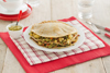 - Beleg de pannenkoeken met curry en maak vervolgens een toren van achtereenvolgens de curry en pannenkoeken.