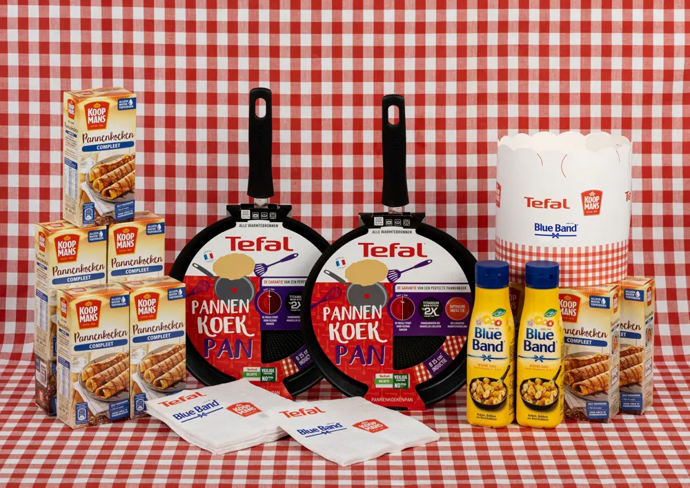 Ook de komende editie is er weer een Pannenkoekdag Startpakket voor elke deelnemende school. Dit pakket wordt beschikbaar gesteld door initiatiefnemers Tefal, Koopmans en Blue Band, die jouw school hiermee een steuntje in de rug willen geven bij de organisatie van een geweldig pannenkoekfeest! De inhoud is genoeg voor circa 100 pannenkoeken. Is dit voor jullie niet voldoende, dan kun je het uiteraard zelf aanvullen.