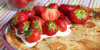 - Verdeel de kwark over de pannenkoeken en schep de aardbeien erop.