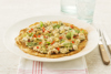 - Schep er de paprika (bewaar een beetje voor de garnering) en koriander door en verdeel over de pannenkoeken,