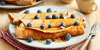 - Rol de pannenkoeken op. Garneer met de blauwe bessen (150 g), amandelen (1 handje) en eventueel wat honing.